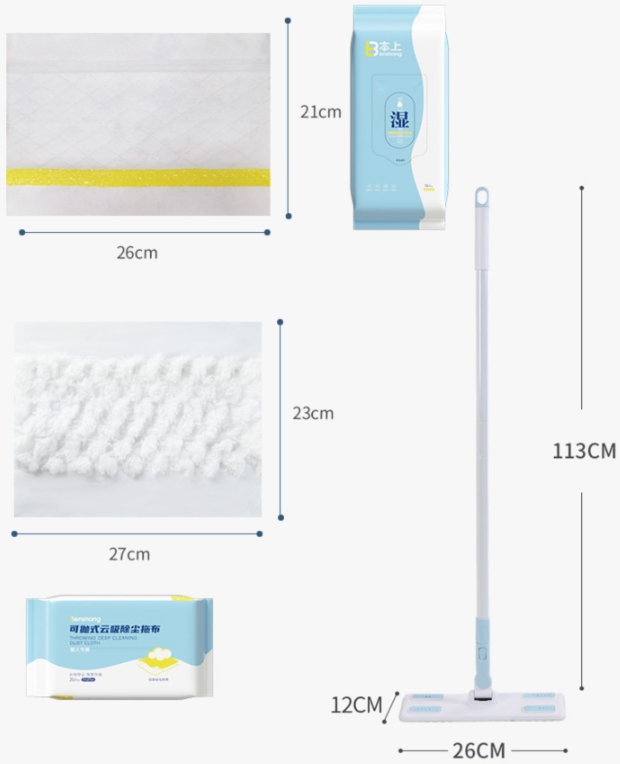 爆款一次性靜電除塵拖地抹布(3包乾巾60張+拖把[絨毛加厚超強吸附])
