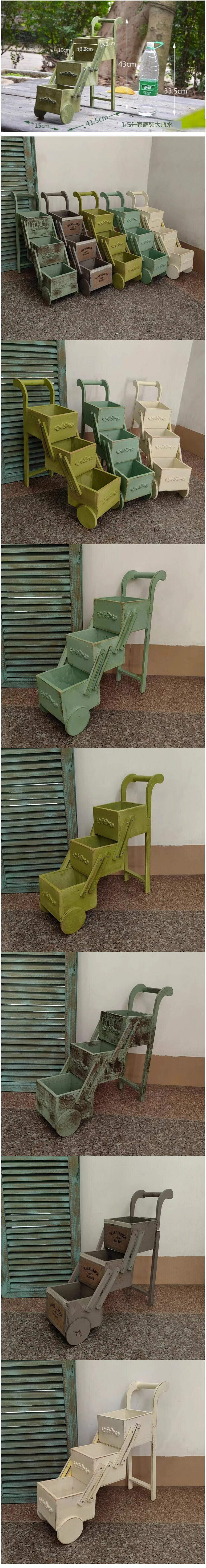 爆款做舊實木迷你小推車花園花盆(水泥灰)