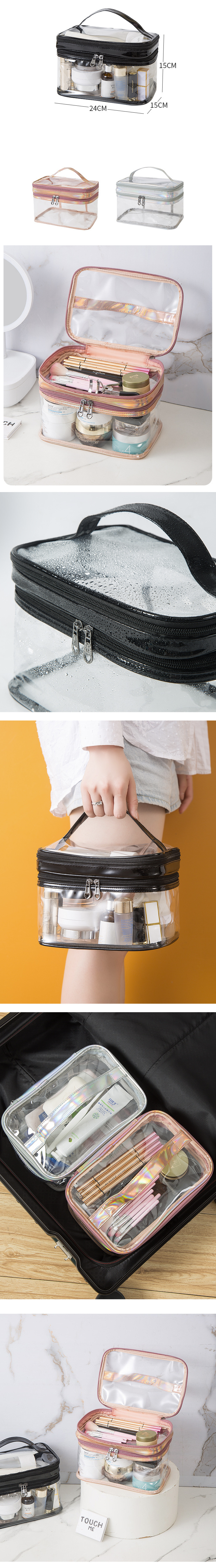 爆款雙層大容量便攜式女防水化妝袋(炫彩銀 尺寸24cm*15cm*15cm)