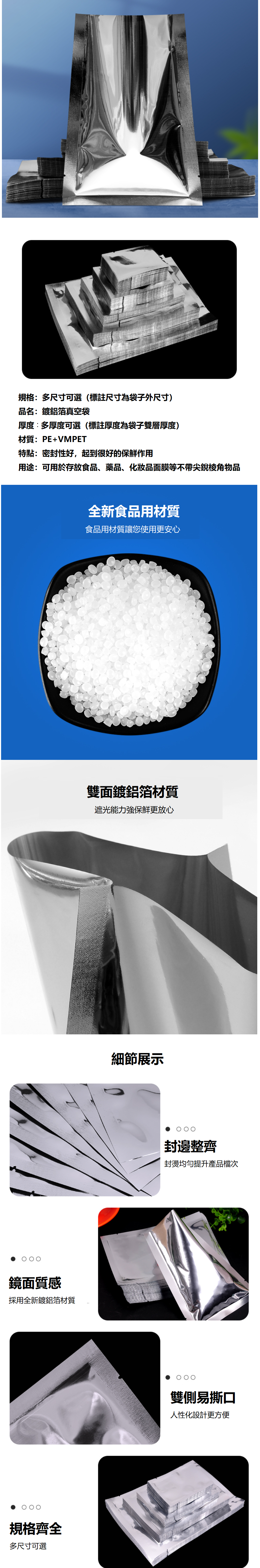 爆款雙面鍍鋁箔真空袋(18絲 30*40CM 100個)