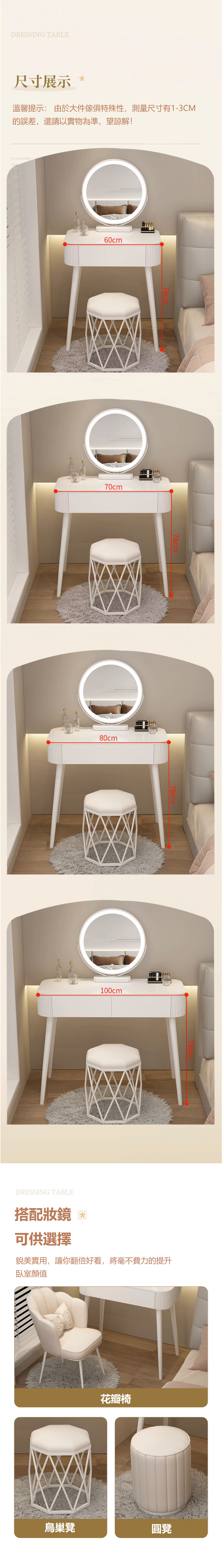 熱推梳妝台臥室簡約現代小戶型化妝台(Q款70長+智慧鏡+圓凳)