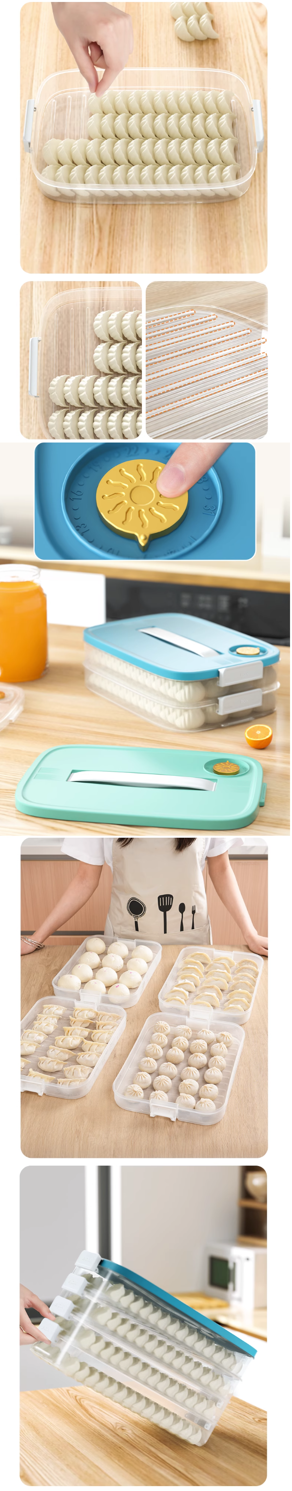 爆款餃子收納盒(青海藍二層一蓋【可裝120個餃子 可手提】)
