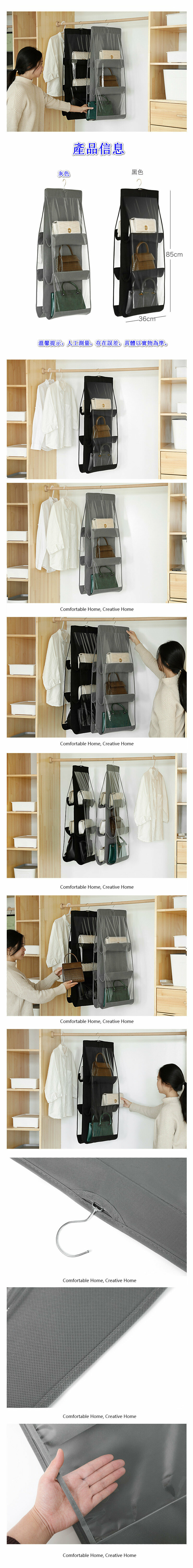 爆款防塵包包收納掛袋【灰色六格】【規格:36*85cm】