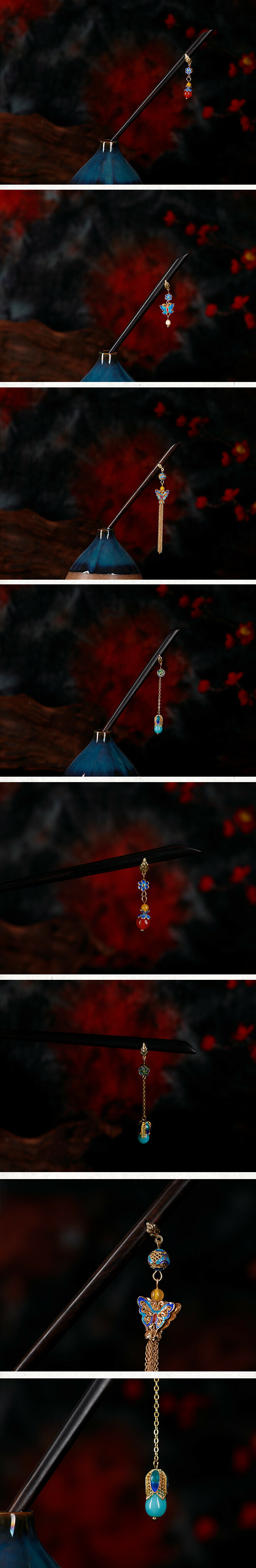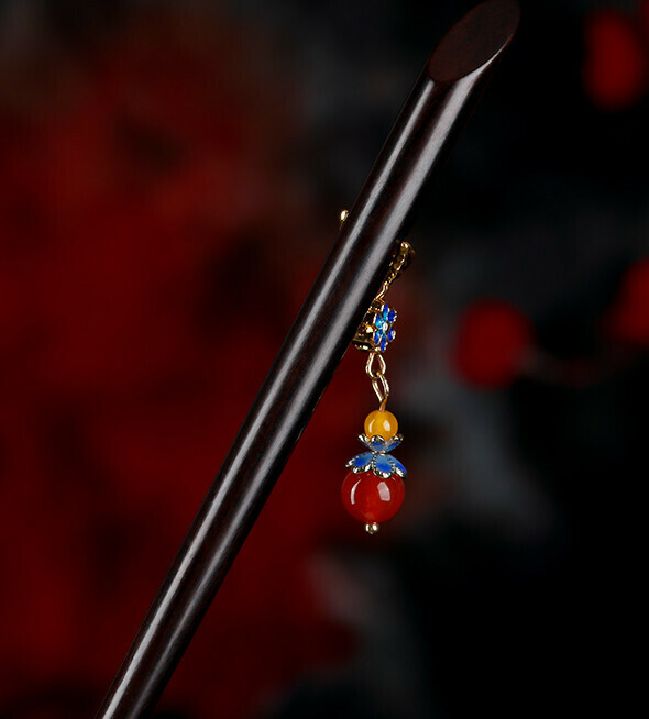 爆款黑檀木古風流蘇髮簪(珠淚)(尺寸:簪長17cm)