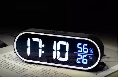 爆款電子LED數字 時鐘(14.5厘米)(黑色(椭圆升级温湿度,一键常亮)—送充电线+充电头 )