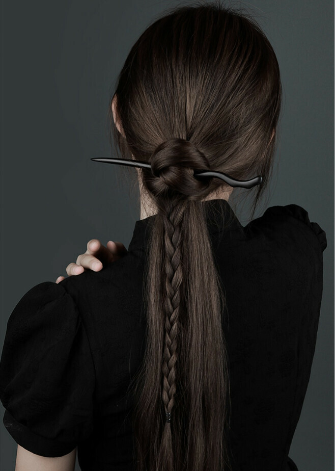爆款加長古風簡約氣質挽發檀木簪(綠檀天枝)(尺寸:簪長25cm)