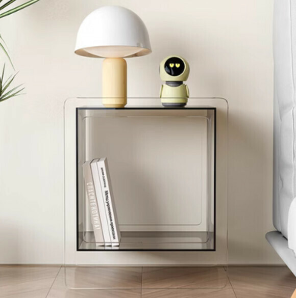 爆款懸浮輕奢亞克力床頭櫃 儲物櫃(淺灰色)(尺寸:40*40*50cm)