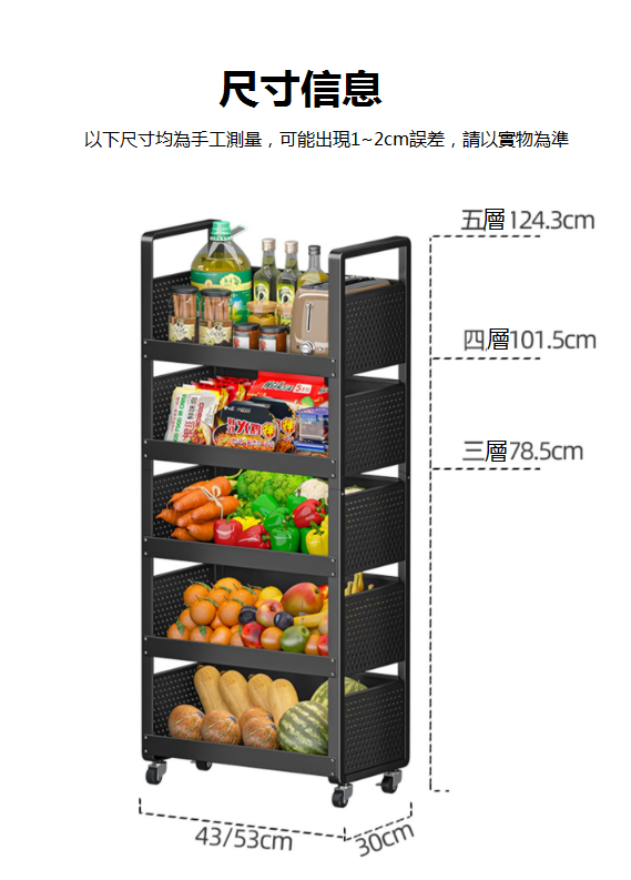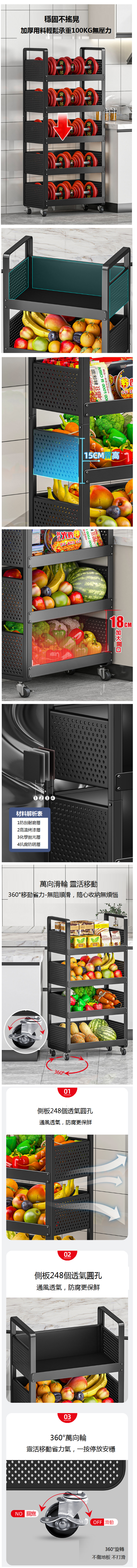 爆款落地多層小推車置物架(特厚53CM三層【兩籃一板】)