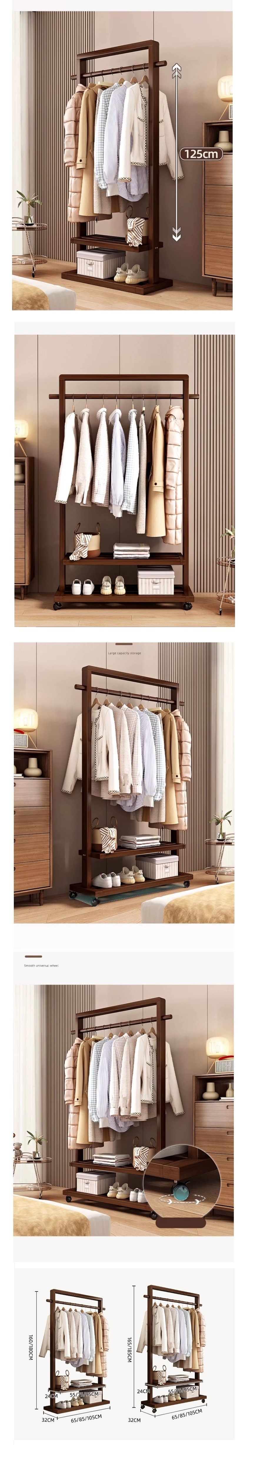 爆款落地實木衣帽架(高檔加高款-胡桃色65CM)