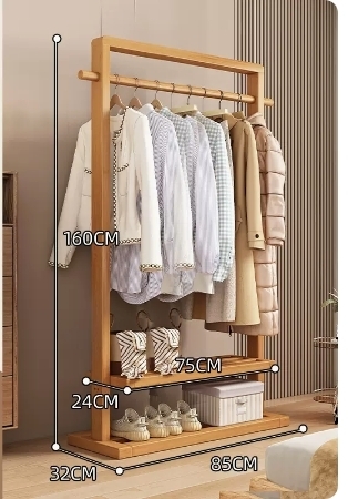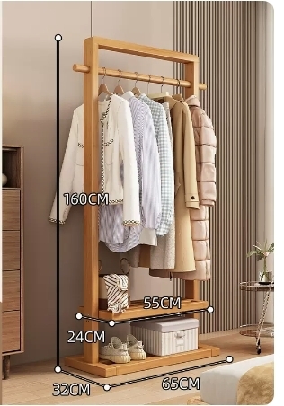 爆款落地實木衣帽架(高檔款-原木色85CM)