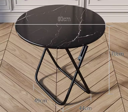爆款可折疊桌簡易木圓桌(黑理石)(尺寸:高70CM,寬80CM)