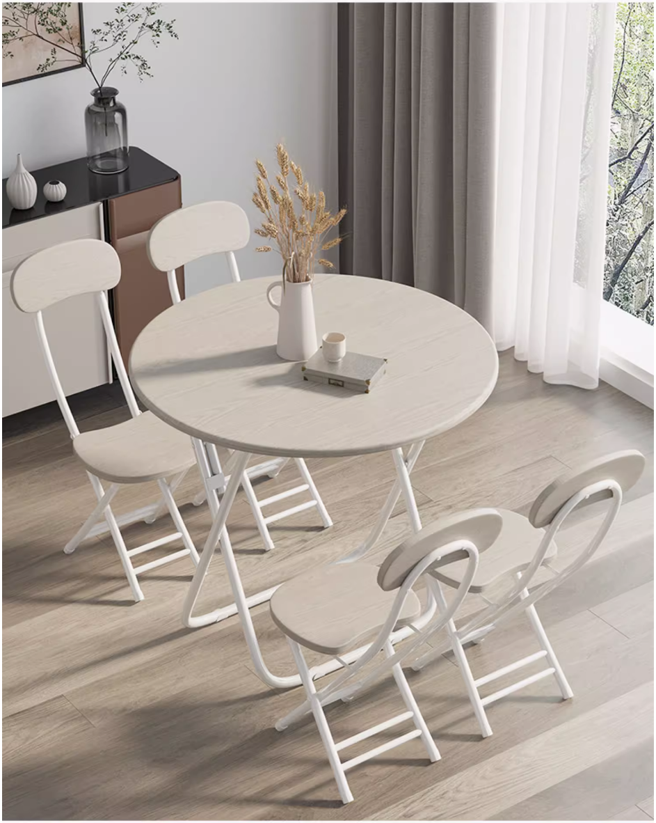 爆款可折疊桌簡易木圓桌(純白色)(尺寸:高70CM,寬70CM)