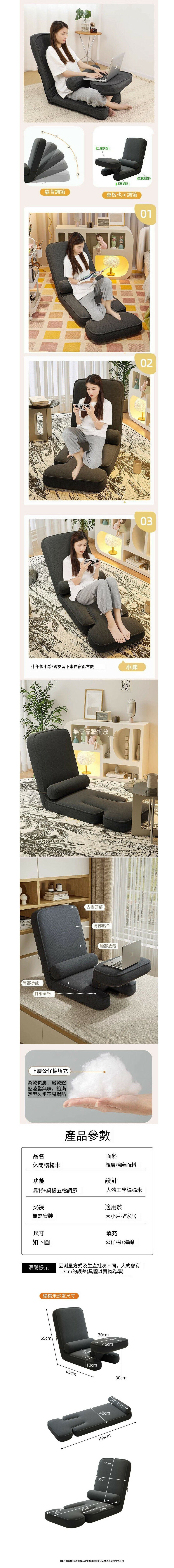 爆款摺疊躺椅 戶外躺椅 休閒懶人沙發 榻榻米靠背椅【旗艦款-深灰色【沙發桌子二合一】