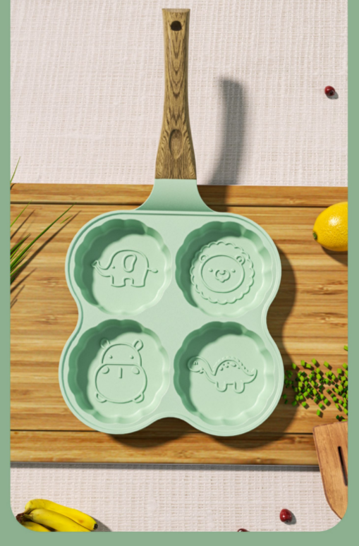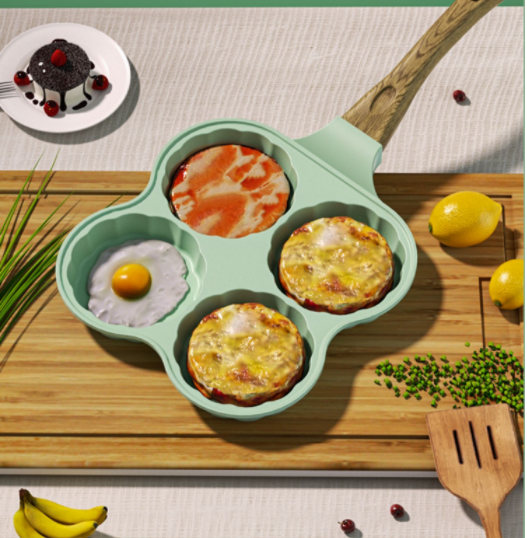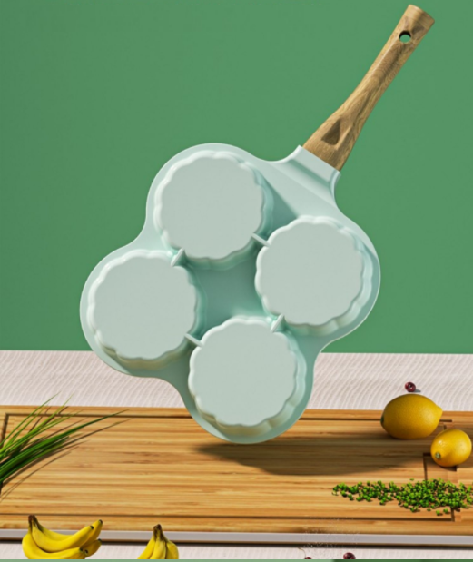爆款四孔模具早餐平底小煎鍋煎蛋松餅蛋堡鍋加不綉鋼油刷氣燃灶專用