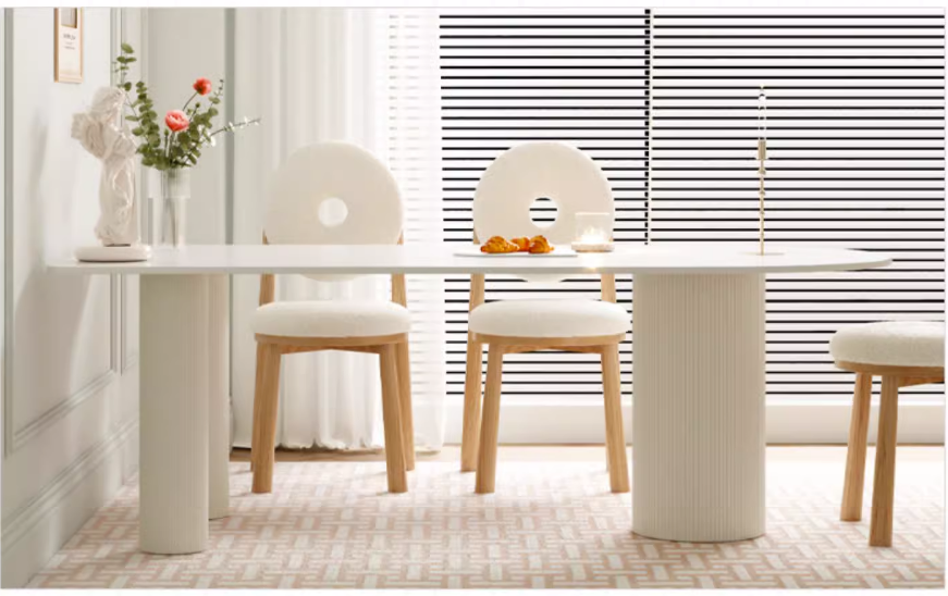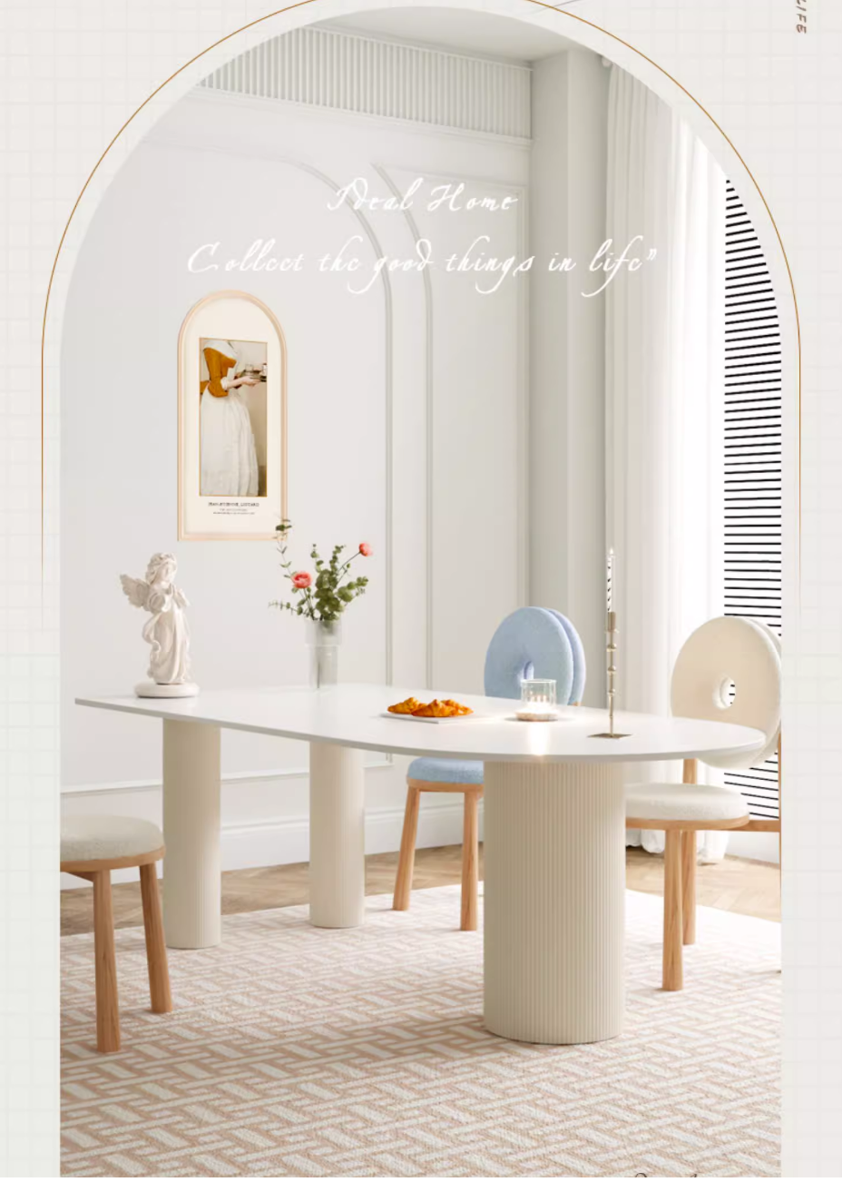 爆款法式小戶型奶油風岩板餐桌(白色)(尺寸:130*70*75CM)