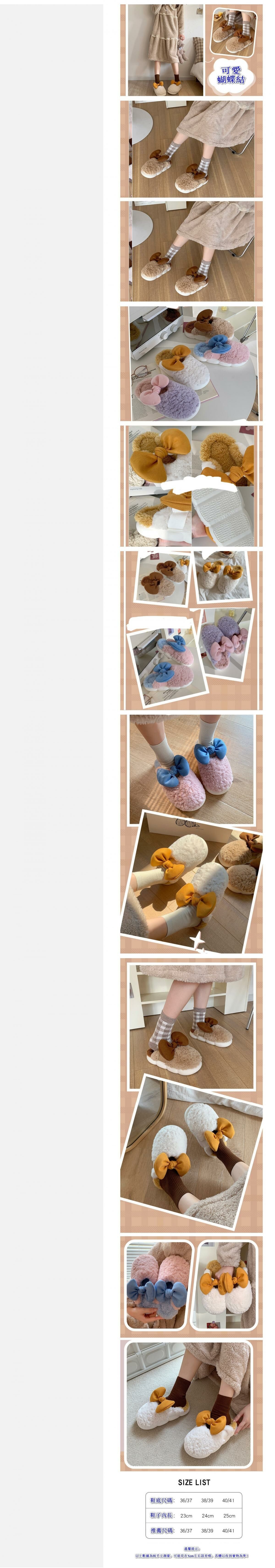 爆款少女心蝴蝶結保棉拖鞋【卡其】(尺碼:36-41碼)【下單後請聯絡客服確認發貨尺碼】