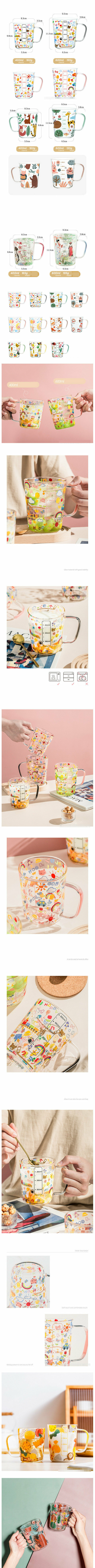 爆款玻璃杯卡通帶刻度(規格:粉色蠟筆天氣玻璃杯(600ml))