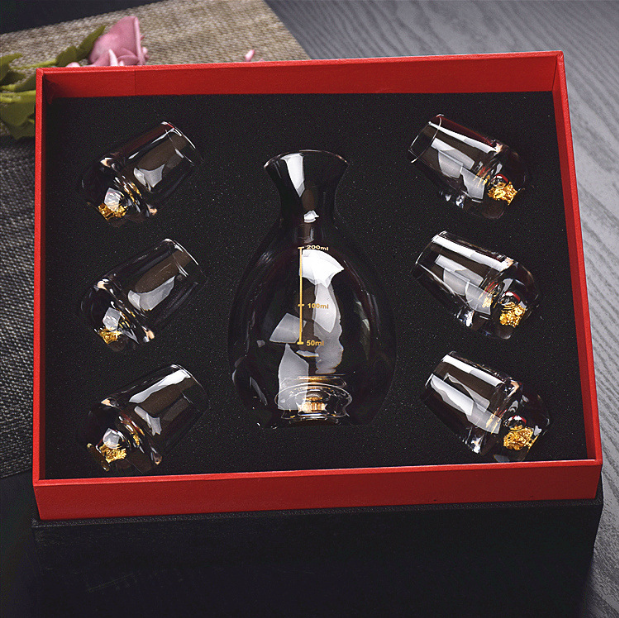 爆款玻璃酒壺酒杯套裝(貨號:圓肚金箔7件套)