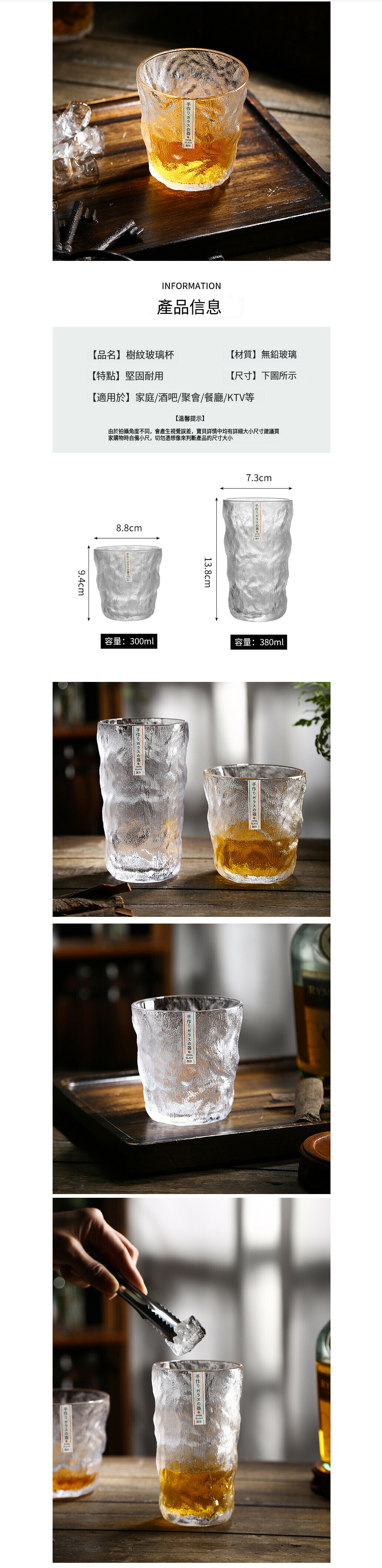 爆款玻璃冰川水杯 茶杯 洋酒杯 威士卡酒杯(高款-【2個裝】)