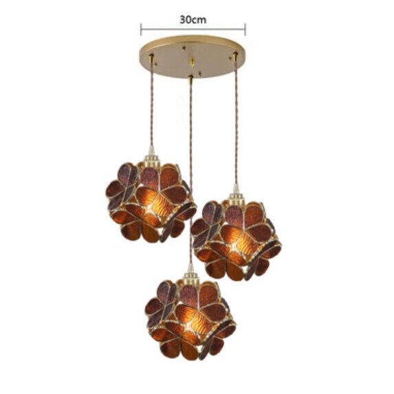 爆款玻璃花瓣天花吊燈(3頭圓盤琥珀色)