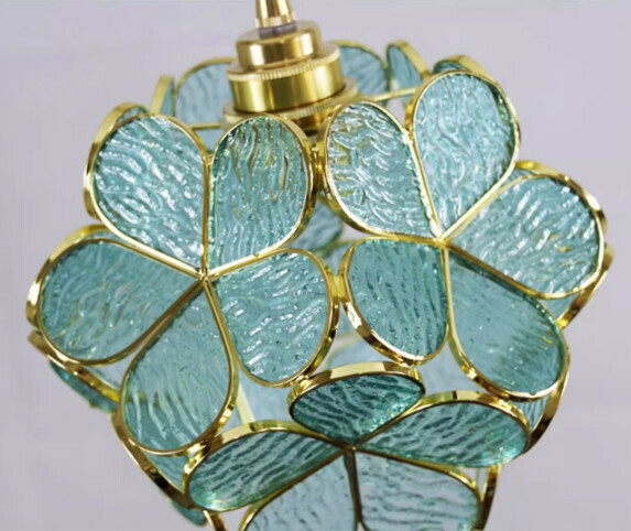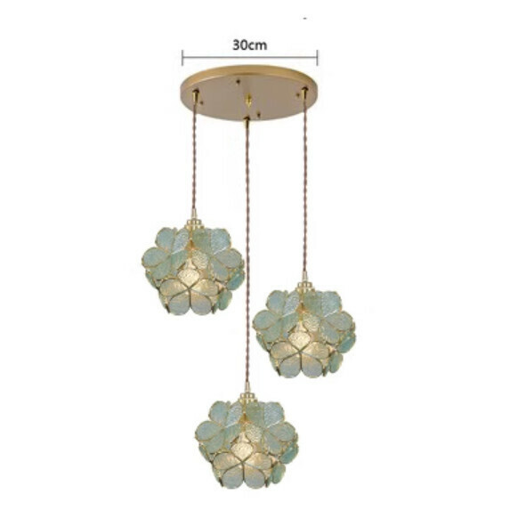 爆款玻璃花瓣天花吊燈(3頭圓盤綠色燈罩)