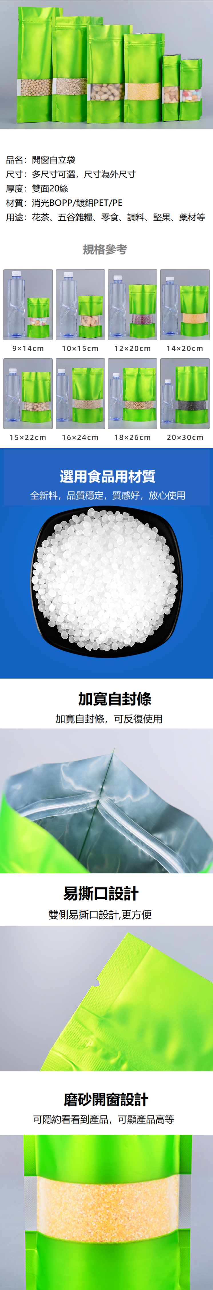 爆款綠色自封袋(20絲 14*20+4CM 100個)