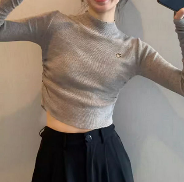 熱推半高領短款長袖T恤針織上衣(灰色均碼)