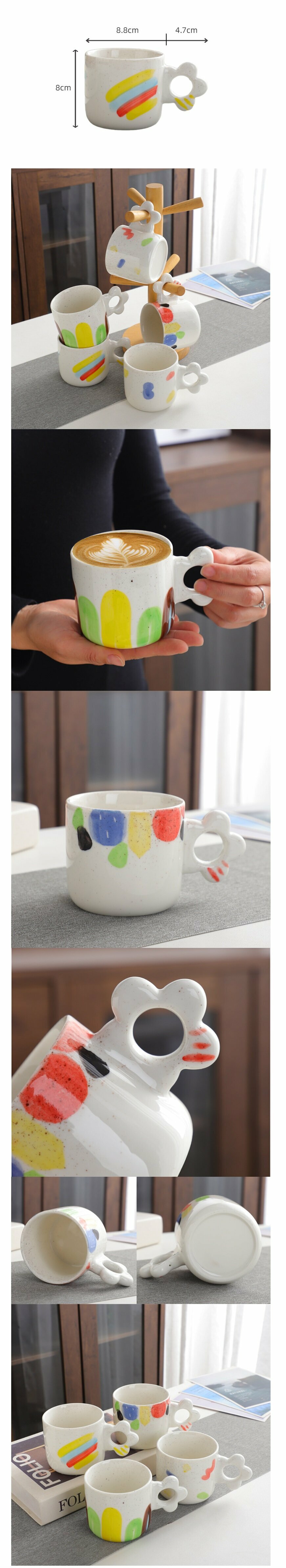 爆款手繪陶瓷花朵咖啡杯(彩虹320ml)