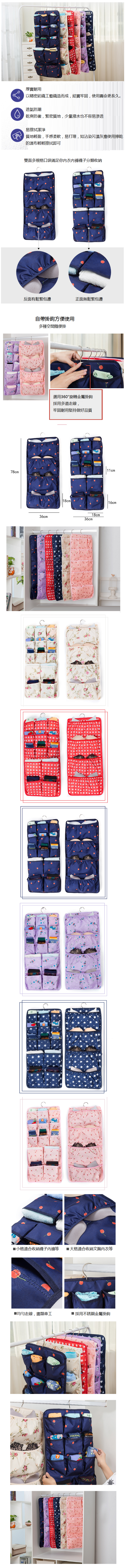爆款門後懸掛式收納掛袋 襪子內衣架內褲架 雜物袋(米色牡丹【4層+13格】)(尺寸:36*78cm)
