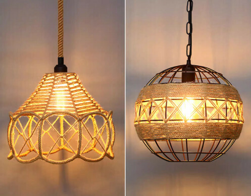 爆款麻繩復古吊燈(圓柱款)(直徑30.5*高20cm)【暖光】