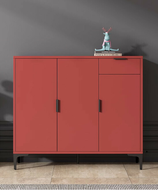 爆款家用進門入戶鞋櫃(波爾多紅)【100cm雙門】