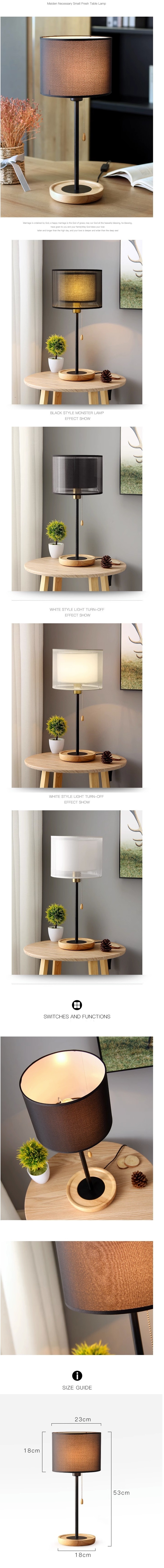 爆款家用護眼北歐臥室創意床頭燈(黑雙層+木底+拉線開關【5瓦暖光】)