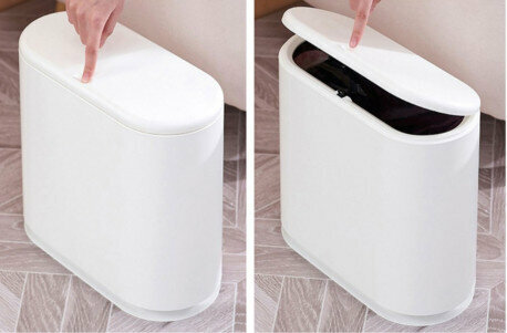 爆款家用衛生間帶蓋垃圾桶(橢圓形卡其色)