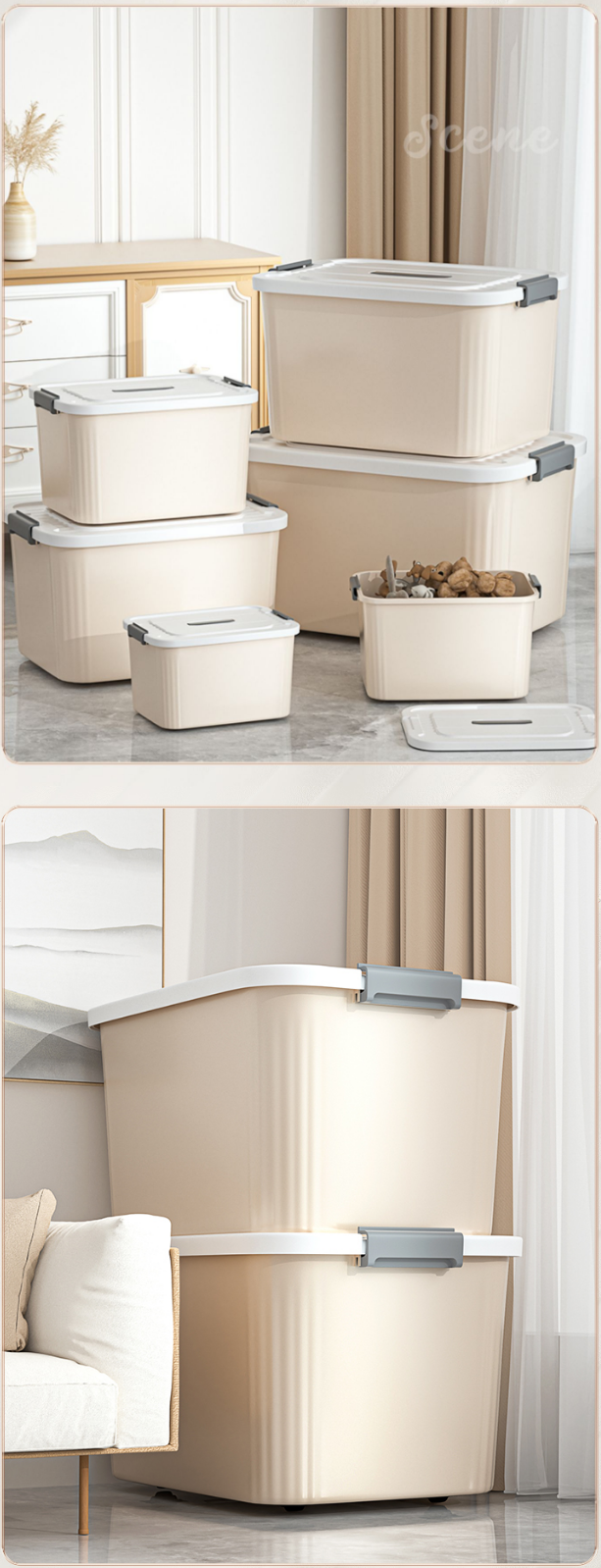 爆款家用衣物塑料收納箱(米月白)(尺寸55L-39*29*21.5CM)
