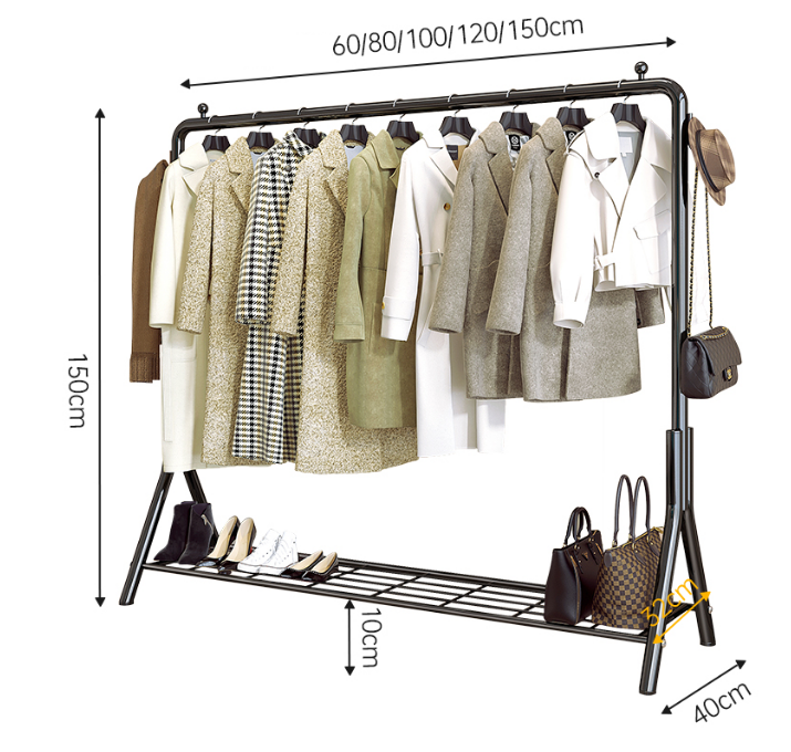 爆款家用室內落地置物掛衣架(黑色)(尺寸:150*150*40CM)