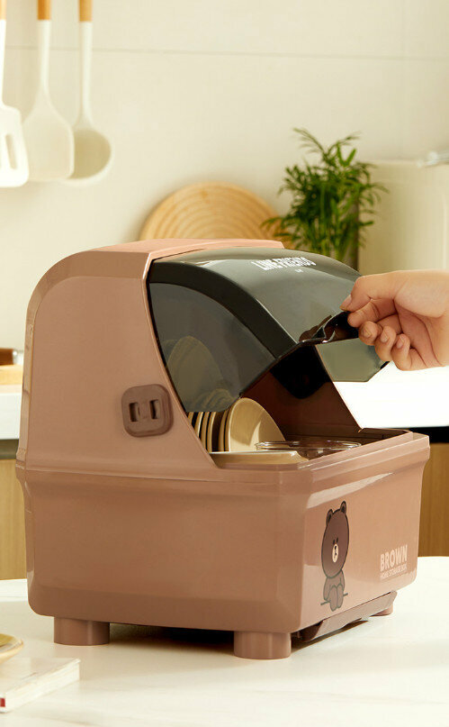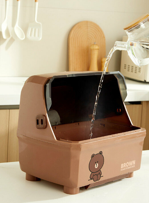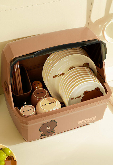 爆款家用廚房碗筷收納盒(BROWN款【半翻蓋/抽屜式瀝水】)