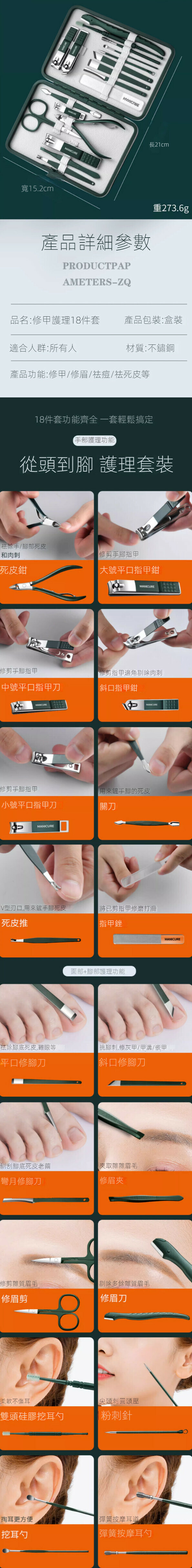 爆款家用指甲刀指甲鉗修甲套裝(天空藍-18件套)