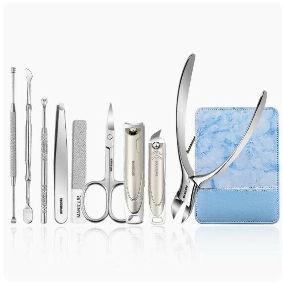 爆款家用指甲刀指甲鉗修甲套裝(藍大理石9件套)