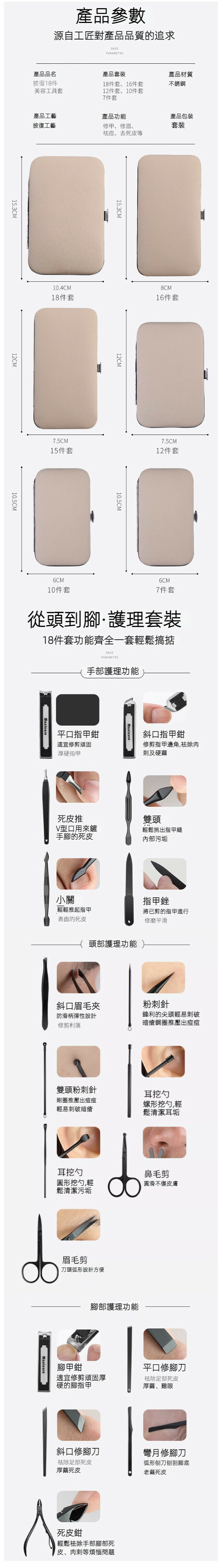 爆款家用指甲刀指甲鉗修甲套裝(酷黑18件套)