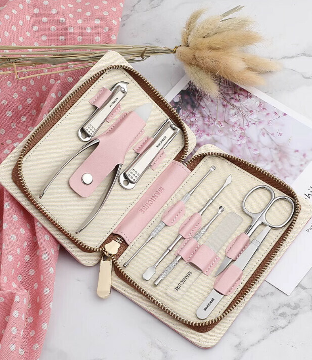 爆款家用指甲刀指甲鉗修甲套裝(綠豎紋9件套)
