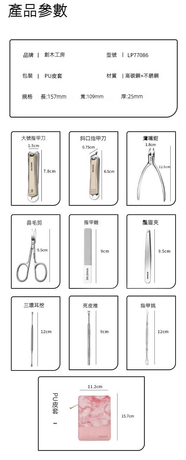爆款家用指甲刀指甲鉗修甲套裝(灰大理石9件套)
