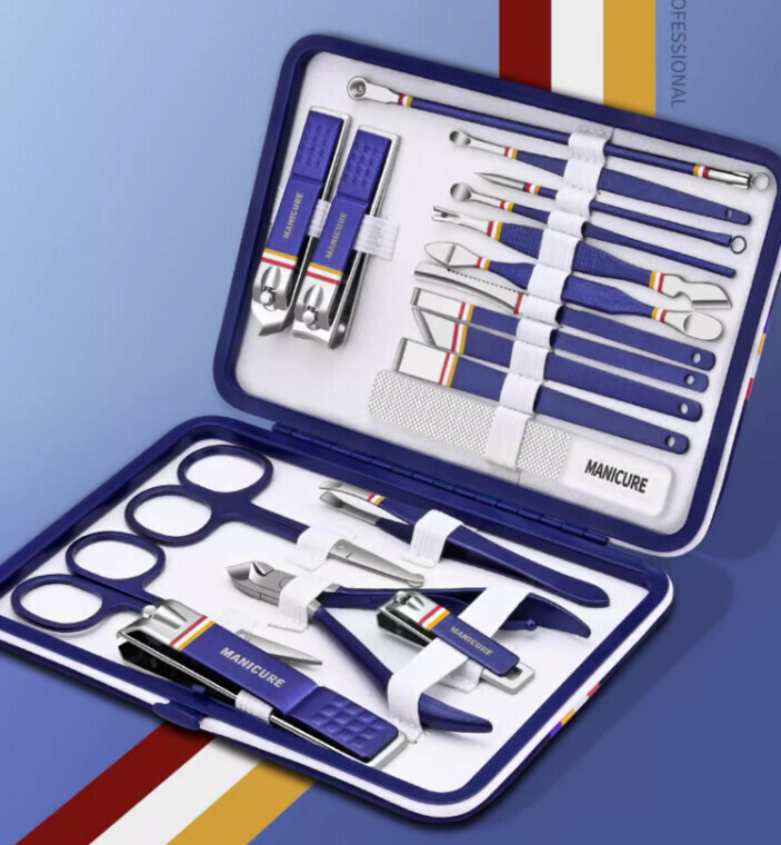 爆款家用指甲刀指甲鉗修甲套裝(寶藍色19件套)