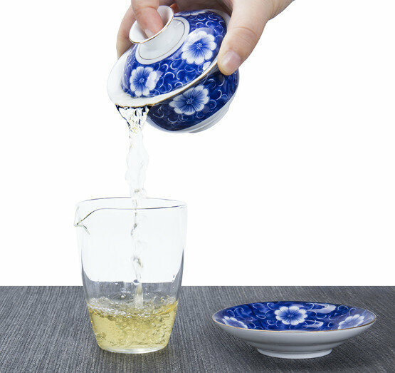 爆款家用簡質陶瓷蓋碗茶杯(白玉瓷黃鉤藤花)
