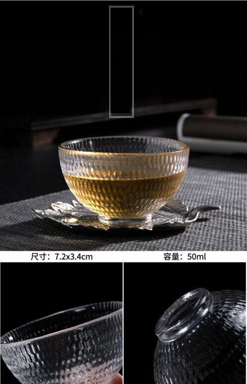 爆款家用加厚耐熱玻璃茶杯(描金鎚冰碗杯)