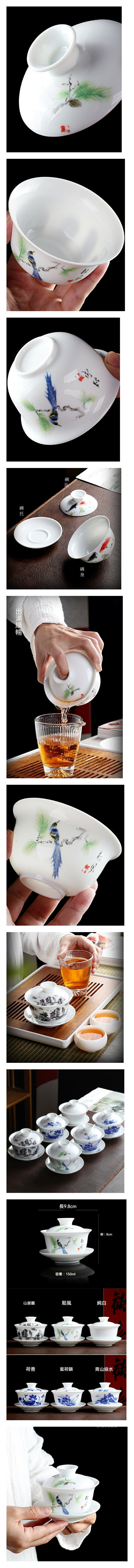 爆款家用白瓷中號蓋碗單個茶杯(山居圖)