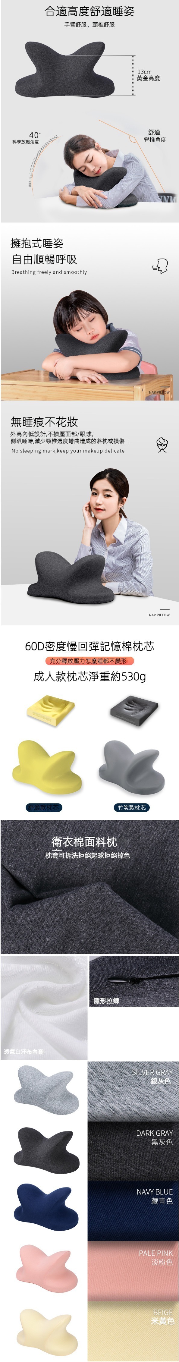 爆款擁抱式記憶棉午睡枕(藏青純棉外套)(MJ8112竹炭成人款)(尺寸:43*23*19cm)