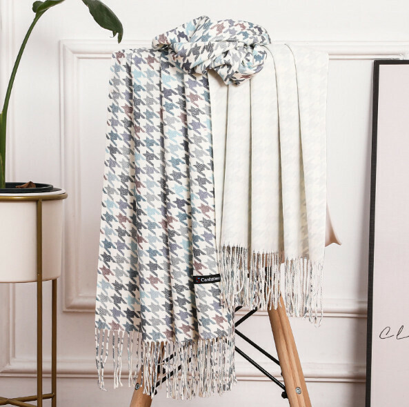 爆款仿羊絨千鳥格圍巾(米色)(尺寸:200*70cm)