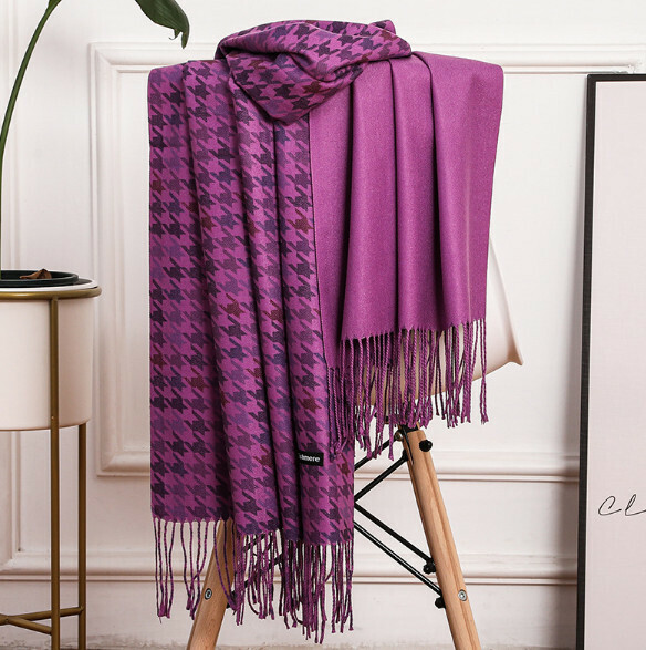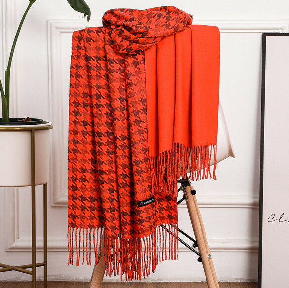 爆款仿羊絨千鳥格圍巾(紅色)(尺寸:200*70cm)