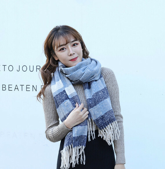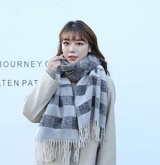 爆款仿羊絨格子圍巾(豆沙色組)(尺寸:200*60cm)