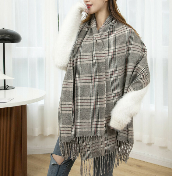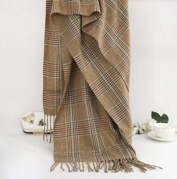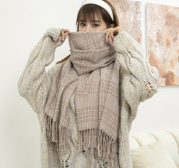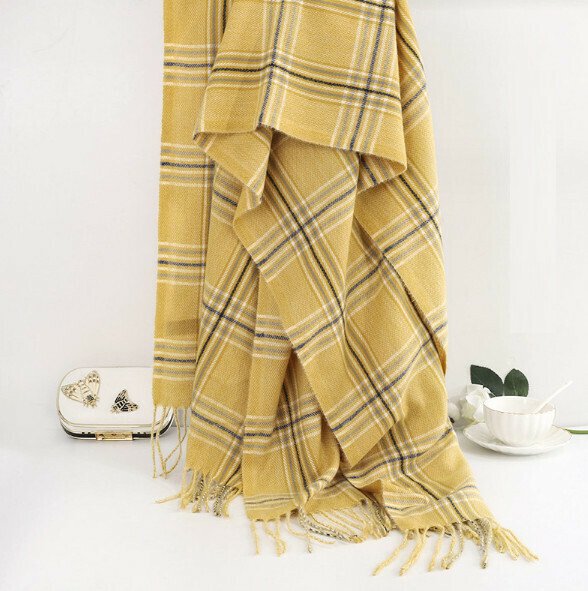 爆款仿羊絨格子圍巾(亮黃白色方塊組)(尺寸:200*70cm)